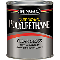 Minwax Polyurethane Paint, Fast Drying, Oil-Based, Liquid, Clear, Gloss, 1 qt Capacity, Can, <7 cSt Viscosity, Vehicles: Linseed Oil-Modified Polyurethane, Mineral Spirits Thinners, 125 sq-ft/qt Coverage, 77 Deg F, 102.2 Deg F Flash Point, 550 g/l VOC, 0.86 Specific Gravity, Mild Hydrocarbon Odor/Scent, Applicable Materials: Wood, Application Method: Lambswool, Synthetic Pad Applicator, Natural Bristle Brush, Standards: ASTM D-4236, OSHA 29 CFR 1910.1200, 24 hr Dry Time, For Woodwork, Furniture, Doors, Cabinets, Floors and Interior Wood Surfaces