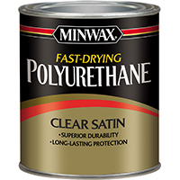 Minwax Fast-Drying Polyurethane, Oil Based, Series: 23010, Clear, Satin, 0.5 pt Capacity, 125 sq-ft/qt Coverage, 101 deg F Flash Point, 529 g/l VOC, 0.860 Specific Gravity, Applicable Materials: Wood, Application Method: Brush, Lambs Wool, For Woodwork Furniture, Doors, Cabinets and Floors