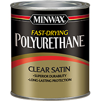 Minwax Polyurethane Paint, Fast Drying, Oil-Based, Liquid, Clear, Satin, 1 qt Capacity, Can, <7 cSt Viscosity, Vehicles: Linseed Oil-Modified Polyurethane, Mineral Spirits Thinners, 125 sq-ft/qt Coverage, 77 Deg F, 100.4 Deg F Flash Point, 550 g/l VOC, 0.86 Specific Gravity, Mild Hydrocarbon Odor/Scent, Applicable Materials: Wood, Application Method: Lambswool, Synthetic Pad Applicator, Natural Bristle Brush, Standards: ASTM D-4236, OSHA 29 CFR 1910.1200, 24 hr Dry Time, For Woodwork, Furniture, Doors, Cabinets, Floors and Interior Wood Surfaces