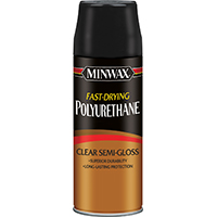 Minwax Polyurethane Paint, Fast Drying, Oil-Based, Liquid, Clear, Semi-Gloss, 11.5 oz Capacity, Aerosol Can, <20.5 cSt Viscosity, Vehicles: Linseed Oil-Modified Polyurethane, Mineral Spirits Thinners, 125 sq-ft/qt Coverage, 77 Deg F, -20.2 Deg F Flash Point, 450 g/l VOC, 7 pH, 0.7 Specific Gravity, Mild Hydrocarbon Odor/Scent, Applicable Materials: Wood, Application Method: Spray, Standards: ASTM D-4236, OSHA 29 CFR 1910.1200, 24 hr Dry Time, For Woodwork, Furniture, Doors, Cabinets, Floors and Interior Wood Surfaces