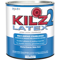 KILZ 2 All-Purpose is a fast-drying, water-based primer-sealer-stainblocker designed for versatile use on both interior and exterior surfaces. This professional-grade formula offers excellent adhesion and mildew resistance while effectively blocking light to medium stains from water, rust, grease, and ink. Its high-hiding white finish is ideal for significant color changes, reducing the number of topcoats required for a flawless result. With a low-odor, low-VOC profile, it is suitable for use in occupied spaces and can be topcoated with either latex or oil-based paints in as little as one hour.