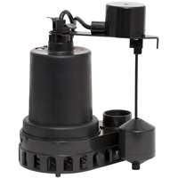 Superior Sump Pump, High Capacity, 48 gpm, 1-1/2 in Outlet, 25 ft Head, Thermoplastic Impeller, 1/3 hp Power, 120 V, 4.1 A, 60 Hz, 10 ft Cord, 32 - 120 deg F, Thermoplastic, Standards: CSA Certified, UL Listed, Vertical Switch
