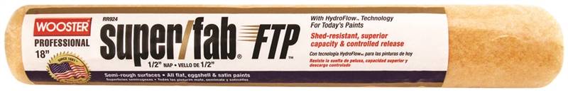 The Wooster RR924-18 Super/Fab FTP is a high-performance 18-inch paint roller cover engineered for professional-grade efficiency and a superior finish. Featuring a 1/2-inch nap and exclusive lager-colored knit fabric, it provides high paint capacity and shed-resistant performance for flat, eggshell, and satin paints. The innovative HydroFlow technology ensures a controlled, consistent release to prevent drips and sagging, while the double-thick polypropylene core resists solvents and cracking. Ideal for semi-rough surfaces, this roller cover is a durable choice for large-scale commercial and residential painting projects.