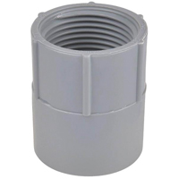 The Carlon E942DR-CTN is a professional-grade 1/2-inch PVC female adapter designed for transitioning between non-metallic conduit and threaded metallic systems or fittings. Constructed from durable, corrosion-resistant gray PVC, this adapter is compatible with both Schedule 40 and Schedule 80 conduit applications. It features a socket end for solvent welding and a female threaded end for secure connections in residential, commercial, and industrial electrical installations. This versatile fitting is UL and CSA listed, ensuring reliable performance in a variety of indoor and outdoor environments.