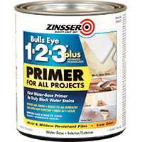 Zinsser Primer Sealer, Series: Bulls Eye 1-2-3 Plus, 1 qt, Can Packing, Water Base, Acrylic Resin, Liquid, White, Mild Odor/Scent, 400 sq-ft Coverage, 30 min to Touch, 1 hr to Recoat Drying Time, 1.317 Specific Gravity, >200 deg F Flash Point, 5 g/l VOC, 50 - 90 deg F, Suitable For Use With: Synthetic Bristle Brush, Roller or Airless Sprayer
