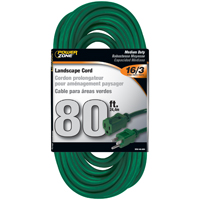Powerzone Extension Cord, SJTW, 16 AWG Conductor, 3 Conductors, 80 ft Length, 10 A, 125 V, Green Yard Jacket, cULus/UL Listed, For Outdoor Applications