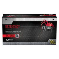 VENOM STEEL Disposable Gloves, Type: Disposable, XL, Nitrile, Black, Beaded Cuff, 6 mil Thick, Powdered/Powder Free: Powder-Free, Latex Free: Yes, Resists: Chemicals, Dirt, Grease, Punctures, Rips, Tear