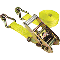 Hampton Ratchet Tie Down, 1666 lb Load Capacity, 15 ft Length, 1-3/4 in Width, Double J-Hook End, 1 Pieces, Yellow, DOT/CHP Specified, 5000 lb Breaking Strength, For Contractor, Farm or Industrial Applications