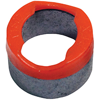 Copper crimp ring with added plastic top to secure crimp ring position on pipe for proper ring placement.
