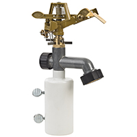 T-post sprinkler with rotation control for full or partial coverage. Distance control with adjustable deflector. 85' diameter spray coverage. Plastic base, covers up to 5,675 sq. ft.