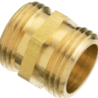 The Plumb Pak PP850-60 is a professional-grade brass hose adapter designed for reliable connections in residential and commercial watering systems. Featuring dual 3/4-inch Male Hose Thread (MHT) connections, this fitting is ideal for joining two female hose ends, extending reach, or connecting specialized irrigation equipment. Its heavy-duty brass construction provides exceptional durability and corrosion resistance, ensuring a leak-free seal even under frequent outdoor use. This versatile adapter is a staple for lawn and garden maintenance, offering a secure and easy-to-install solution for various watering applications.