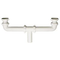 The Plumb Pak PP20930 Center Waste Outlet is a professional-grade plumbing solution designed for double bowl kitchen sink installations. Constructed from durable white plastic, this 1-1/2-inch by 16-inch outlet features a baffle tee to ensure efficient, high-velocity drainage. The versatile design supports both slip joint and direct connect installations, providing flexibility for various plumbing configurations. Each unit comes complete with six nuts and six washers, offering a comprehensive kit for reliable, leak-free performance in residential or commercial settings.