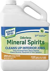 Klean Strip Green Odorless mineral spirits is made with 65% more renewable resources and has 65% lower fumes than traditional mineral spirits. It has a unique, patent-pending formula containing odorless mineral spirits and has 65% lower VOCs than regular mineral spirits. It contains no hazardous air pollutants and no ozone depleting. Klean Strip Green, the products that are better for the environment. Klean Strip Green solvents are effective high-quality products but have a reduced impact on the world in which we live. Reduce your carbon footprint with Klean Strip Green .