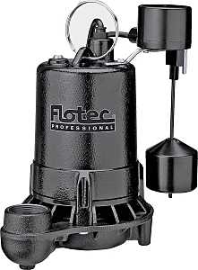 Flotec Sump Pump, Professional Submersible, Series: E50VLT, 4800 gph, 1-1/4 in Inlet, 1-1/2 in FNPT Outlet, 22 ft Head, Rust-Proof Impeller, 1/2 hp Power, 115 VAC, 0.25, 60 Hz, 10 ft Cord, 32 - 70 deg F, Cast Iron, CSA, CUS Certified, 1 Phase