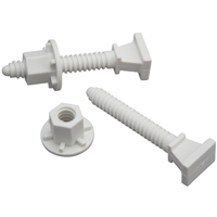 The Plumb Pak PP835-19 Toilet Bolt Set is a professional-grade solution for securing toilet bowls to floor flanges in residential and commercial applications. Constructed from high-strength, corrosion-resistant plastic, these 2-3/8-inch bolts are designed to provide a stable connection without the risk of rust or mineral buildup. The kit includes two bolts and two open cap nuts, allowing for easy installation and convenient access for future adjustments. This universal set is an essential component for plumbing contractors and maintenance professionals performing new installations or routine toilet repairs.