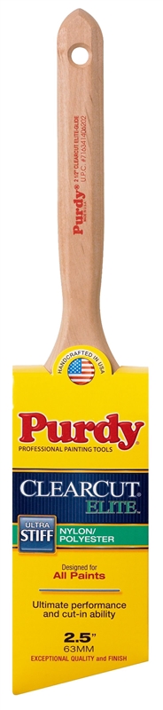 The Purdy Clearcut Elite 2.5-inch Angular Trim Paint Brush is engineered for professional-grade performance and exceptional cut-in ability. Featuring a unique blend of ultra-stiff nylon and polyester bristles, this brush is specifically designed to handle thicker coatings and low VOC paints with ease. The moisture-wicking fluted alderwood handle provides a comfortable, secure grip for extended use, while the stainless steel ferrule ensures long-lasting durability. Handcrafted in the USA, it is the ideal tool for achieving precise, clean lines on molding, trim, and ceilings.