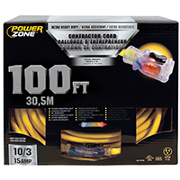 The Powerzone ORP511935 is a professional-grade 100-foot SJTOW extension cord engineered for the most demanding jobsite and industrial environments. Featuring a heavy-duty 10/3 AWG copper construction, this cord supports up to 15 Amps and 1875 Watts, making it ideal for high-draw power tools like table saws and grinders. The durable yellow jacket is oil-resistant, water-resistant, and flame-retardant, maintaining exceptional flexibility in extreme temperatures ranging from -58°F to 221°F. For enhanced safety, it includes a lighted locking connector that provides a clear power-on indication and prevents accidental disconnections during use.